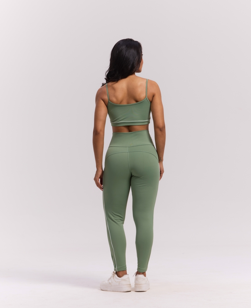 Conjunto de Top e calça poliamida, zero transparência e média compressão.